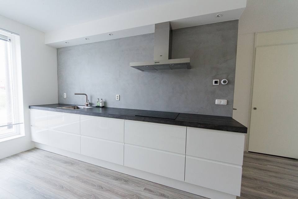 Keukenblad en kasten ombouw afgewerkt met Beal Mortex betonlook.