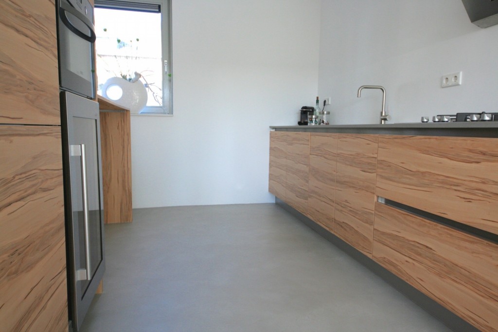 Keukenblad en kasten ombouw afgewerkt met Beal Mortex betonlook.