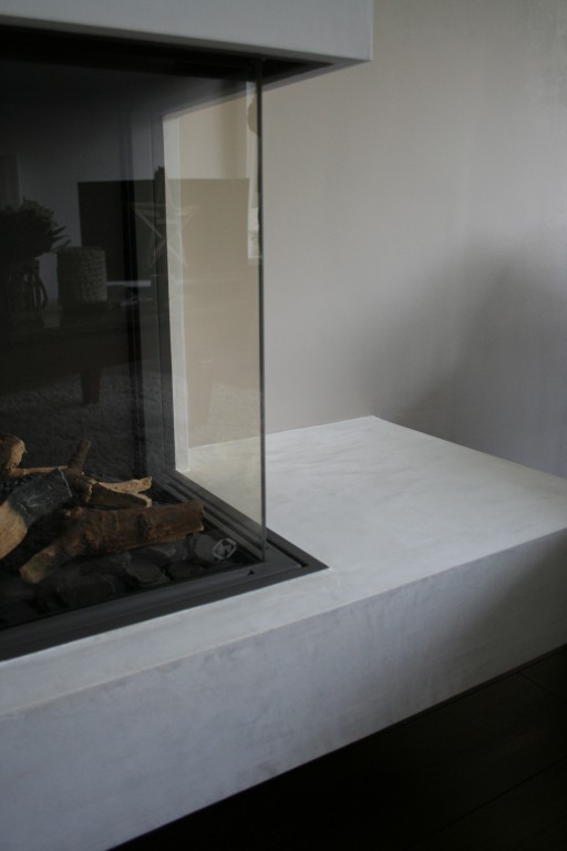 Keukenblad en kasten ombouw afgewerkt met Beal Mortex betonlook.